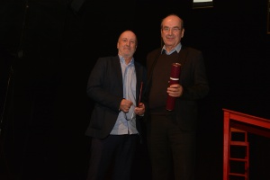 Detalj sa uručenja Nagrade; Stevan Koprivica, predsjednik Žirija i laureat Baćović