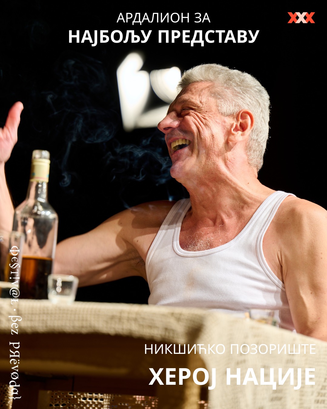 Na 30. izdanju Jugoslovenskog pozorišnog festivala koji je trajao od 17. do 22. novembra u Narodnom pozorištu Užice, predstava „Heroj nacije“ Nikšićkog pozorišta ponijela je šest nagrada; ARDALION za najbolju predstavu, režiju, žensku ulogu, scenografiju,…