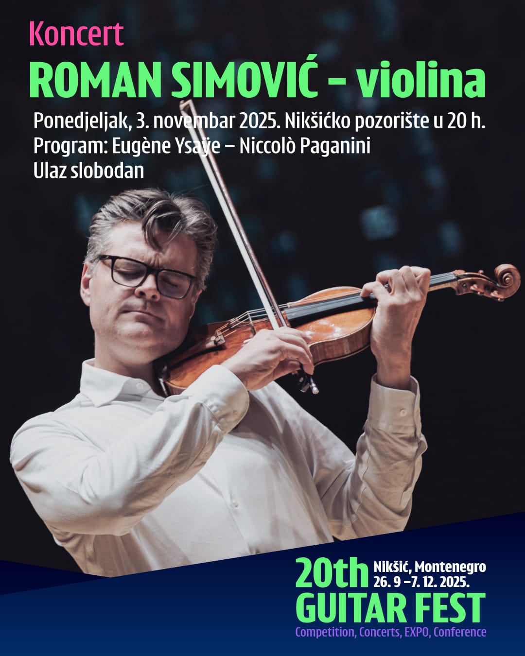 U okviru 20. izdanja manifestacijeNiksic Guitar Festival, na večernjoj sceni Nikšićkog pozorišta, nastupiće svjetsko muzičko ime, violinista Roman Simović. Nikšićka publika će imati priliku da u ponedjeljak, sa početkom u 20 sati, uživa u virtuoznom…
