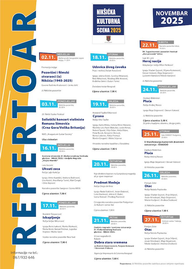 POGLEDAJ DETALJEPrijavite se da redovno dobijate informacije o svim dešavanjima sa repertoara Nikšićkog pozorišta.